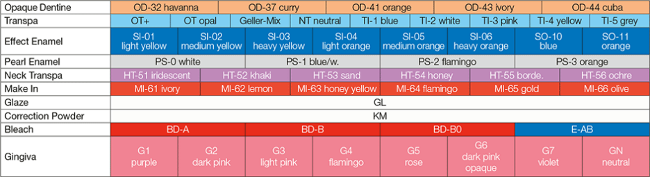 Creation LS is a lithium disilicate veneering ceramic specifically developed for Creation LS Press. It consists of an amorphous glass matrix enriched with feldspar. As a result, Creation LS impresses with a brilliant colour effect and natural light reflection. The shade range follows the proven colour-coding concept of all veneering ceramics from Creation Willi Geller. This allows Creation LS Press restorations to be veneered easily and efficiently in line with the habitual layering concept.
