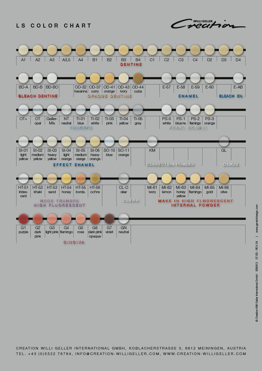 - Stratificazione secondo il collaudato sistema di codifica cromatica Creation Willi Geller